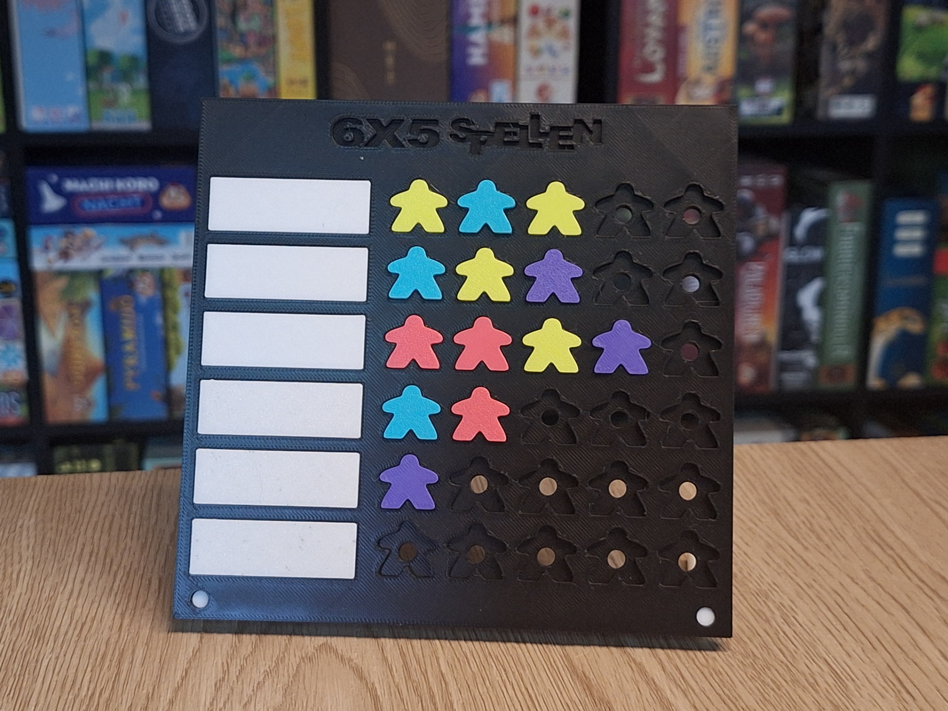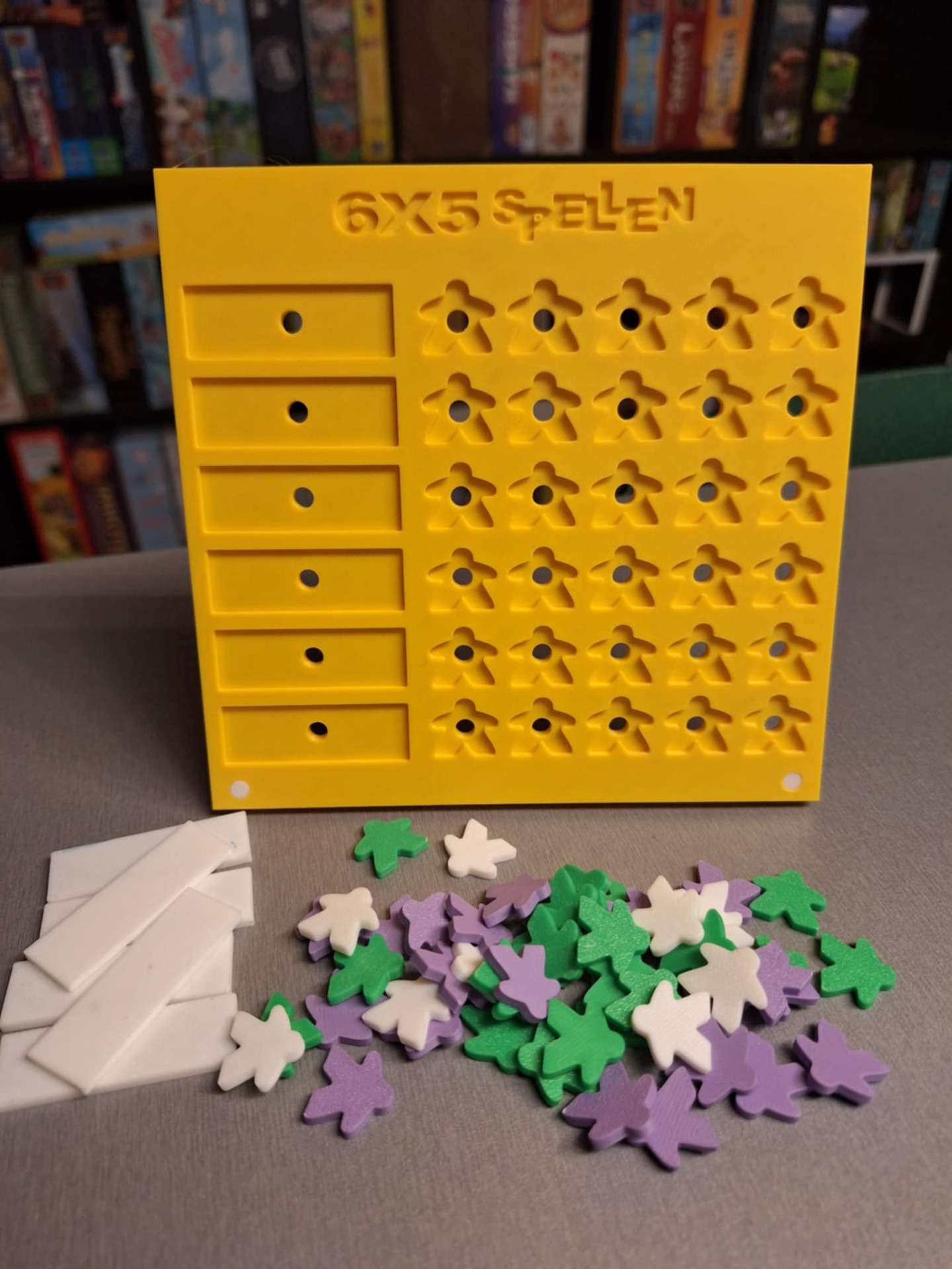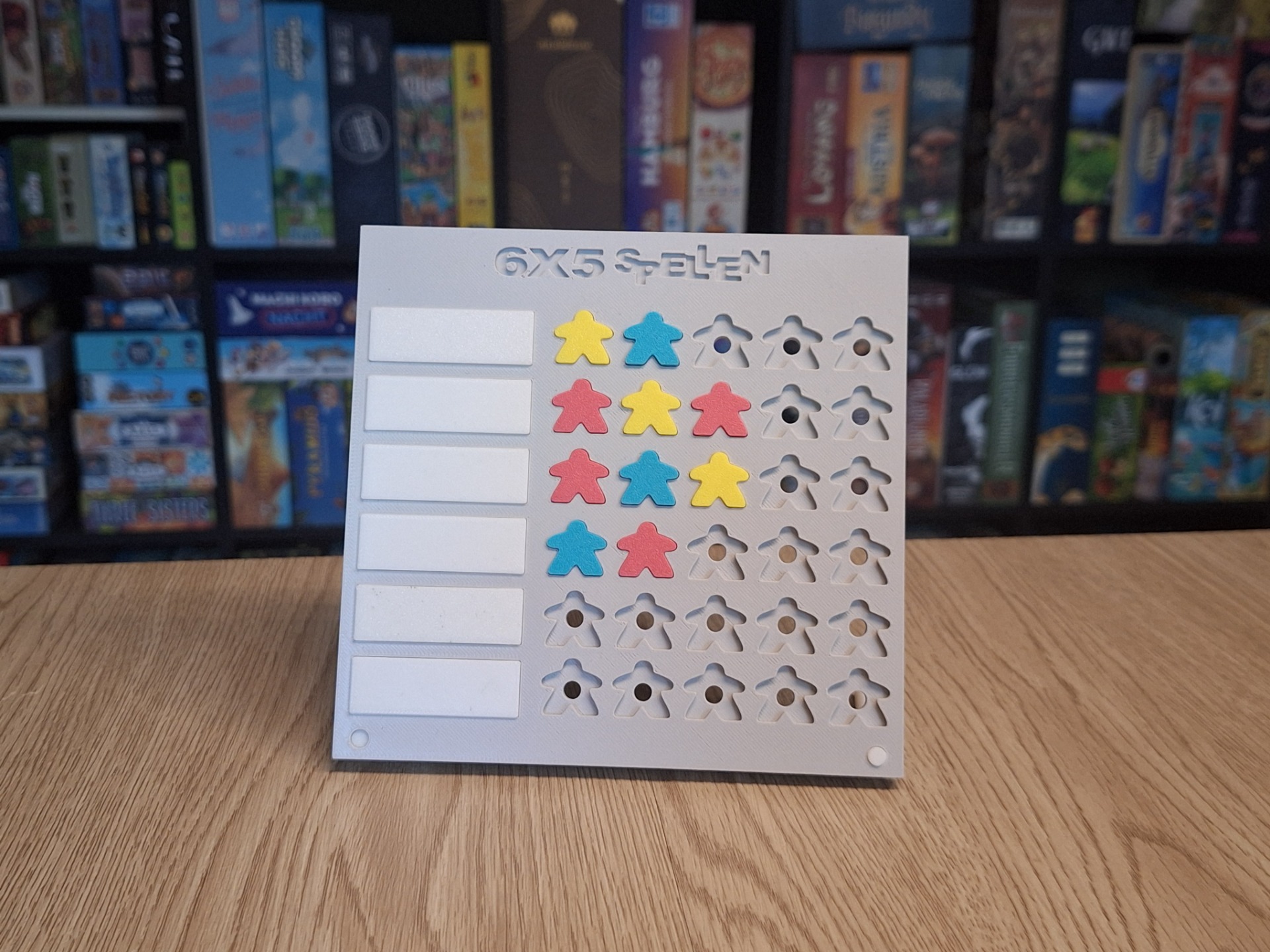 De kleur van het bord kan je aanduiden, geef de kleuren van de meeples door in de opmerking al naar gelang het aantal spelers dat je wil betrekken. Er worden meer meeples meegeleverd dan er ruimte is, daarbij ook wat witte als 'neutrale' winnaars voor spelers die niet in je vaste challenge groep zitten.