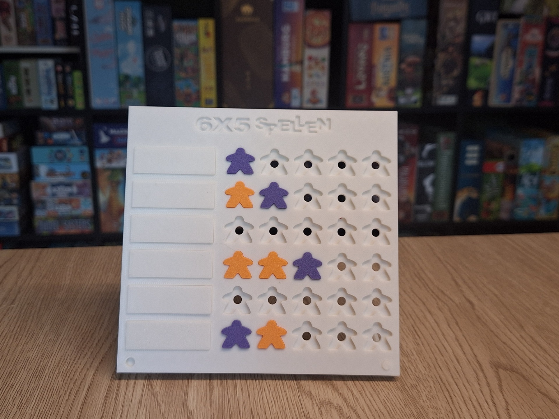 Het 6*5 challenge bord is 15 cm breed en 14.5 cm hoog. Het wordt geleverd met 2 pootjes om het rechtop te zetten die ook kunnen gebruikt worden om alle onderdelen, na voltooien van de challenge, terug te resetten voor een nieuwe challenge.