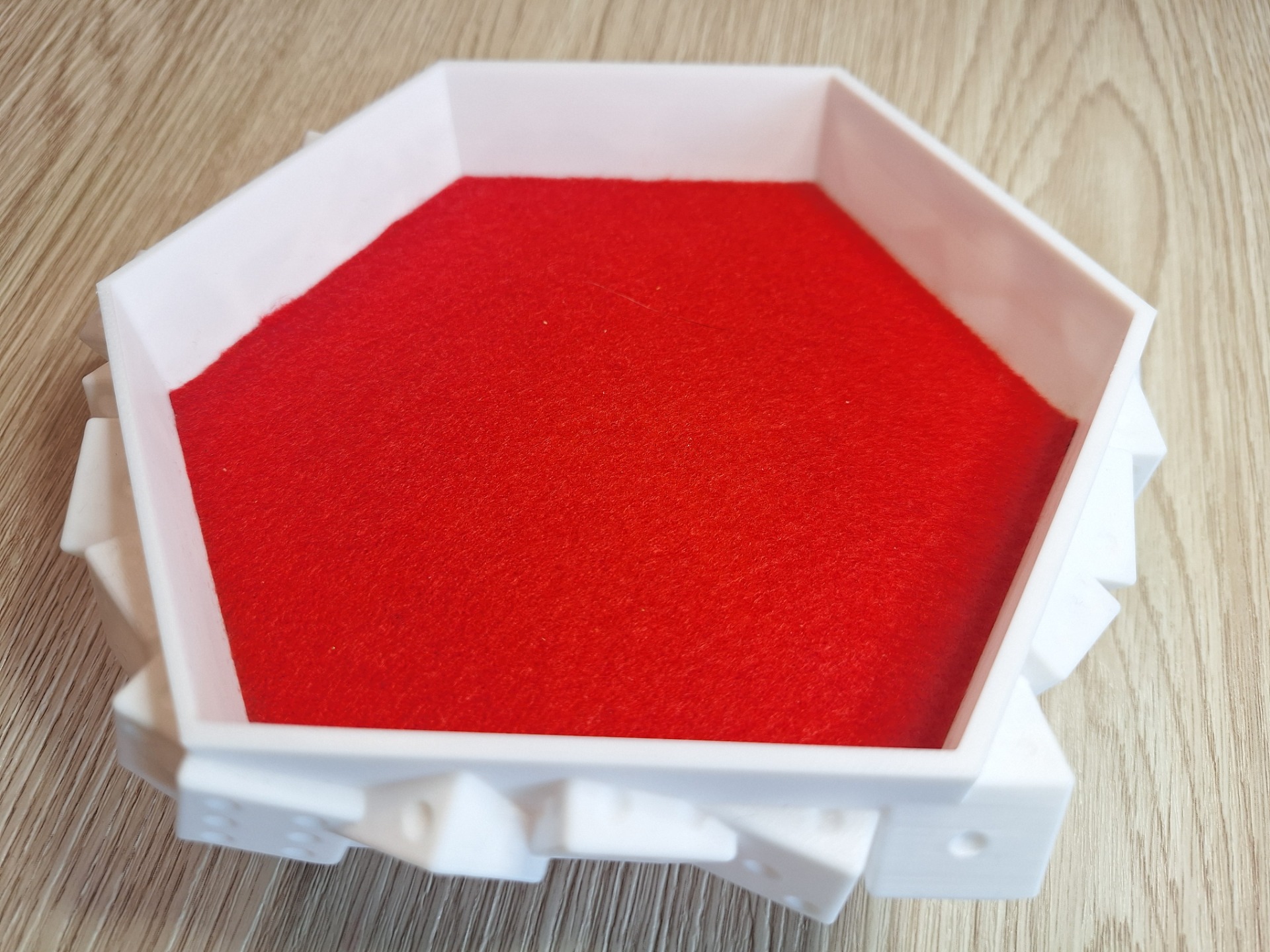 Buitenmaat is 17,5cm op 17,2cm en 3cm hoog, de binnenmaat is 13,9cm op 18,4cm.