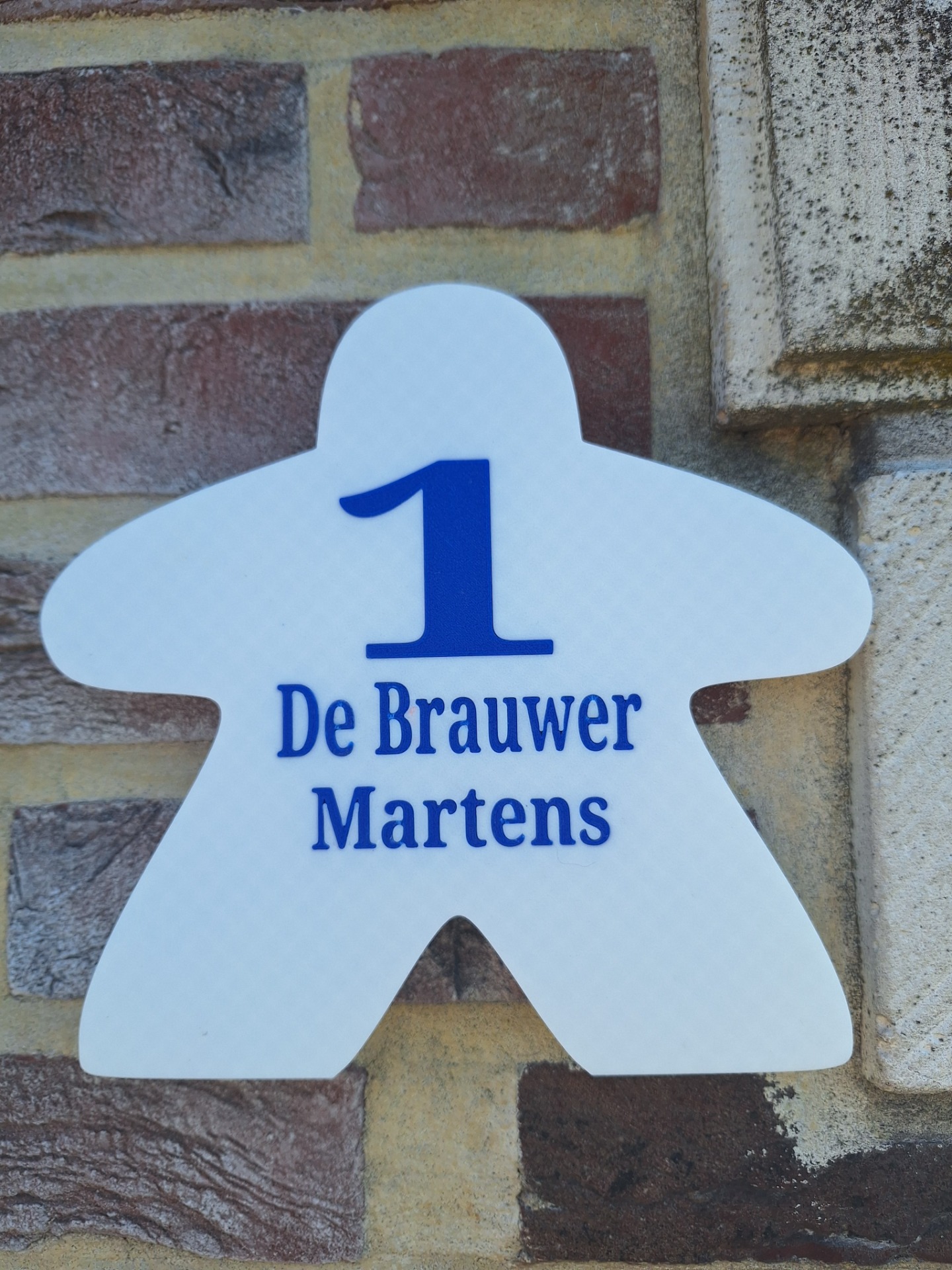 huisnummer is 18,5cm hoog, 19cm breed en 4mm dik. Kan met of zonder achternamen geprint worden. Hoe meer cijfers in het huisnummer hoe kleiner de cijfers zullen zijn.