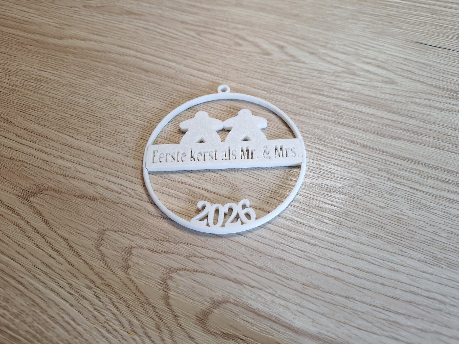Deze kerstbal meet 9,5 cm hoog en 9 cm breed. Geef bij je bestelling het jaartal mee dat je erop wilt zien.
