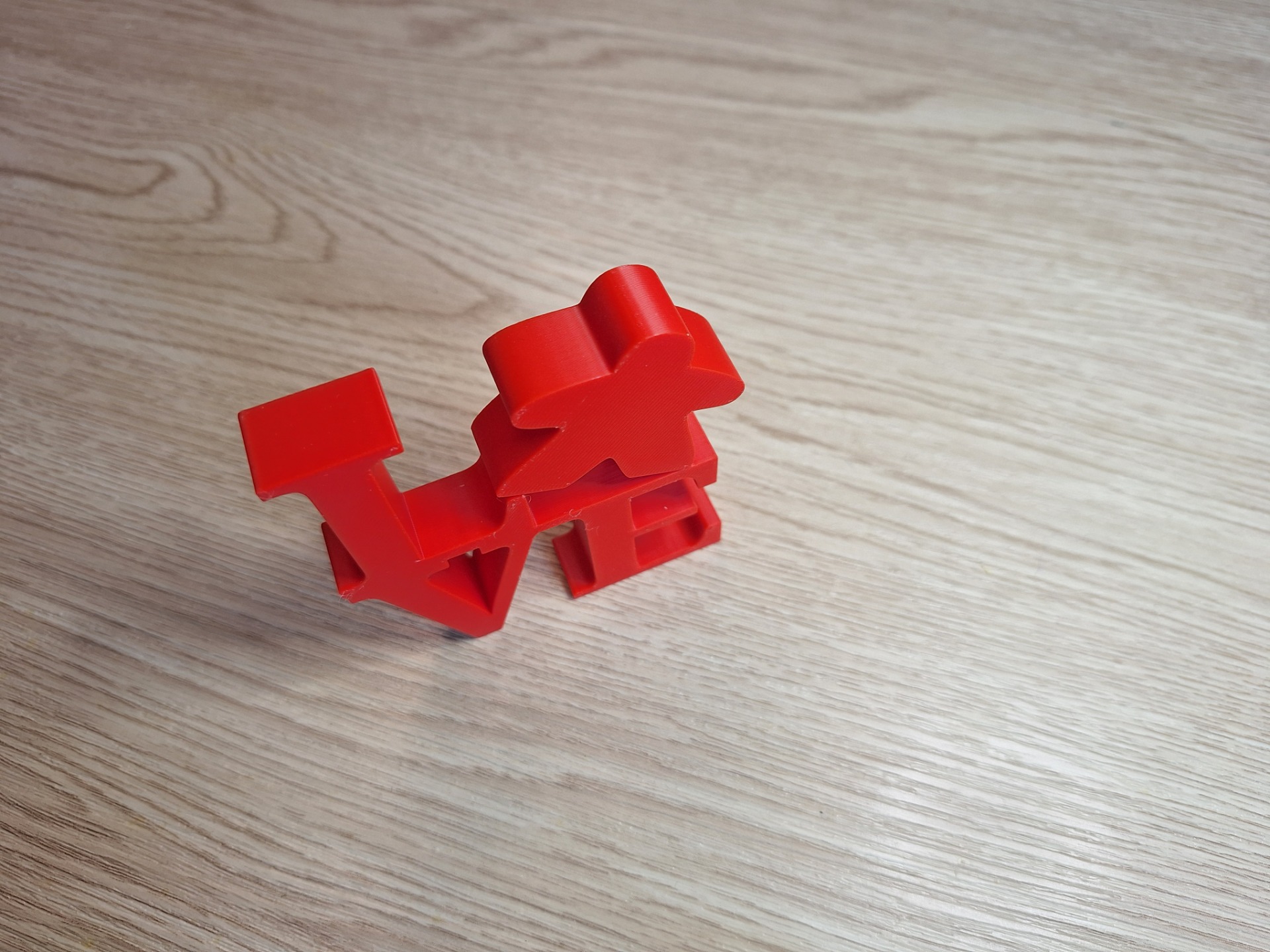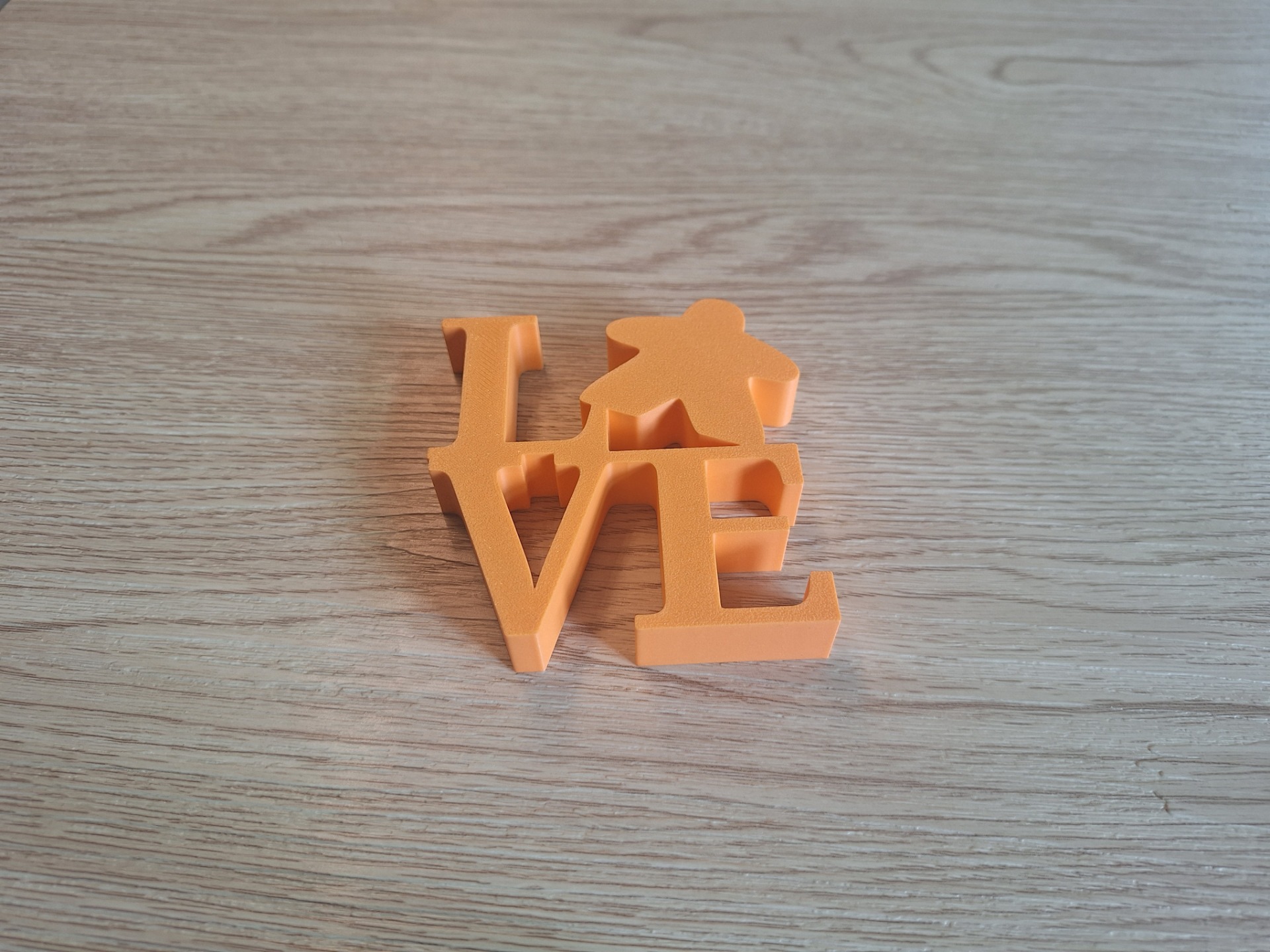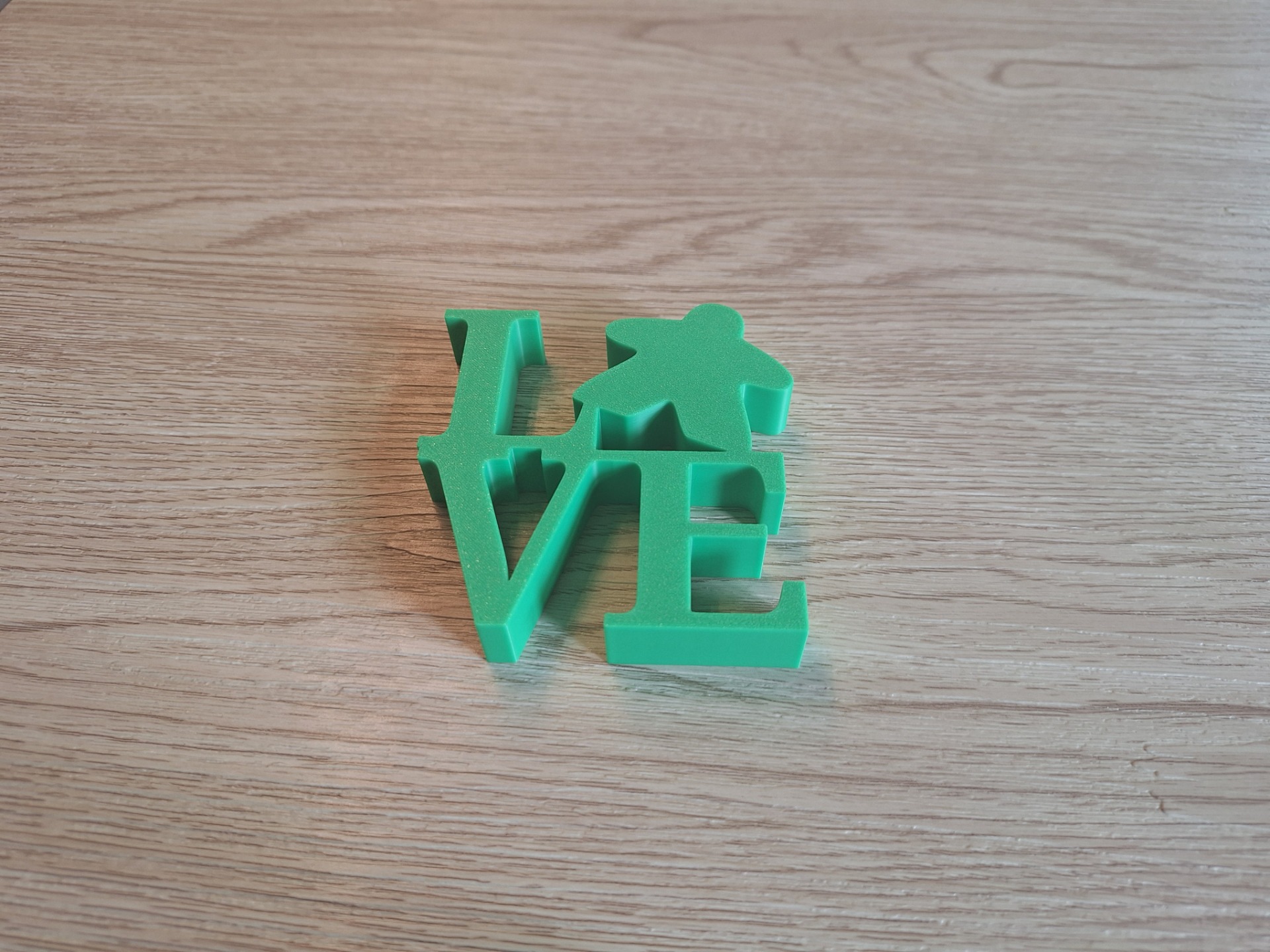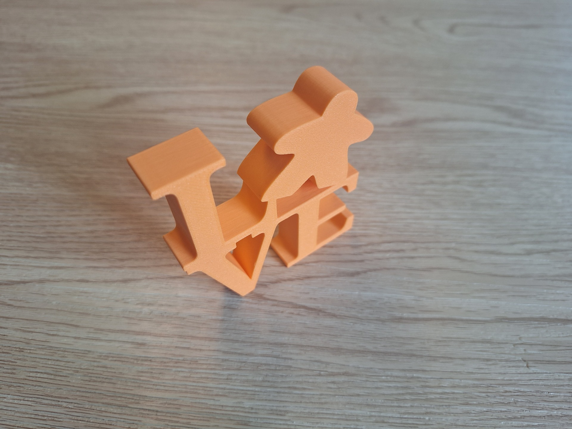 Maak je liefde voor bordspellen zichtbaar met onze kleine Love waarin de O vervangen is door een meeple.