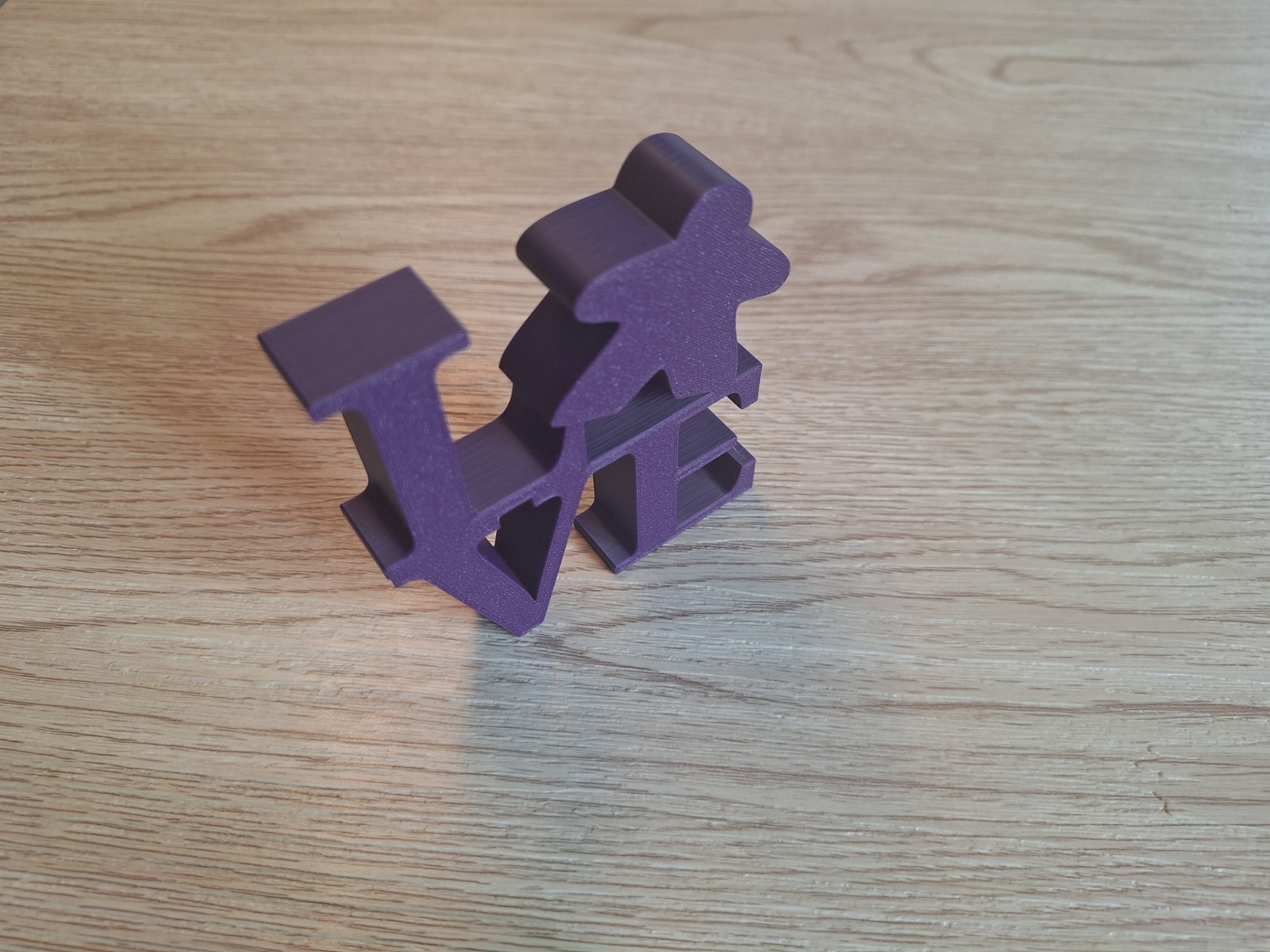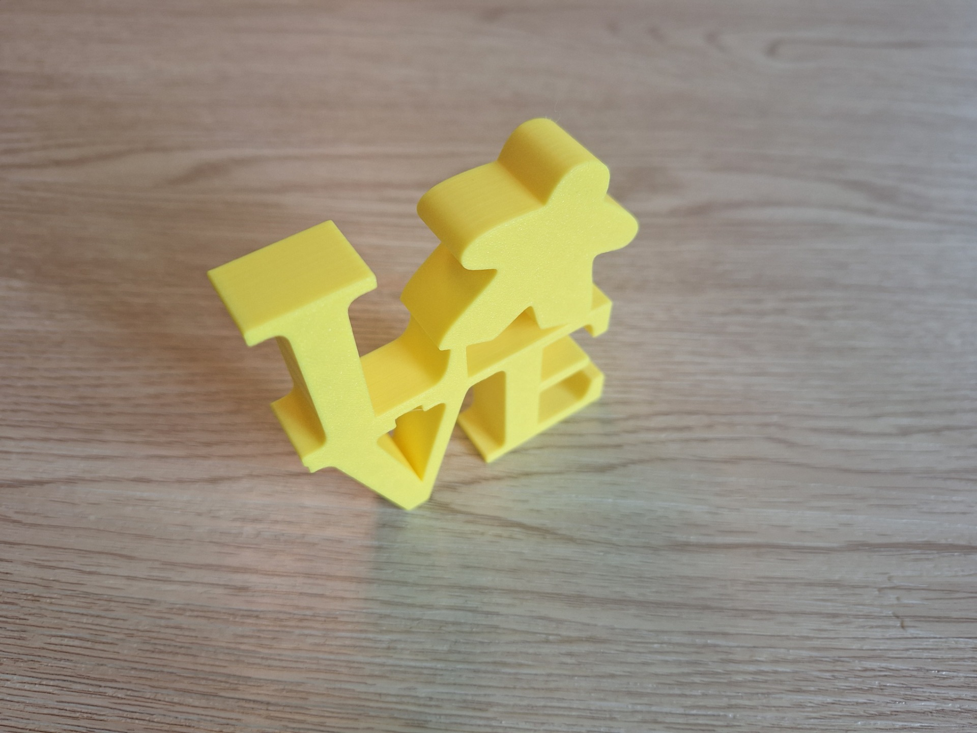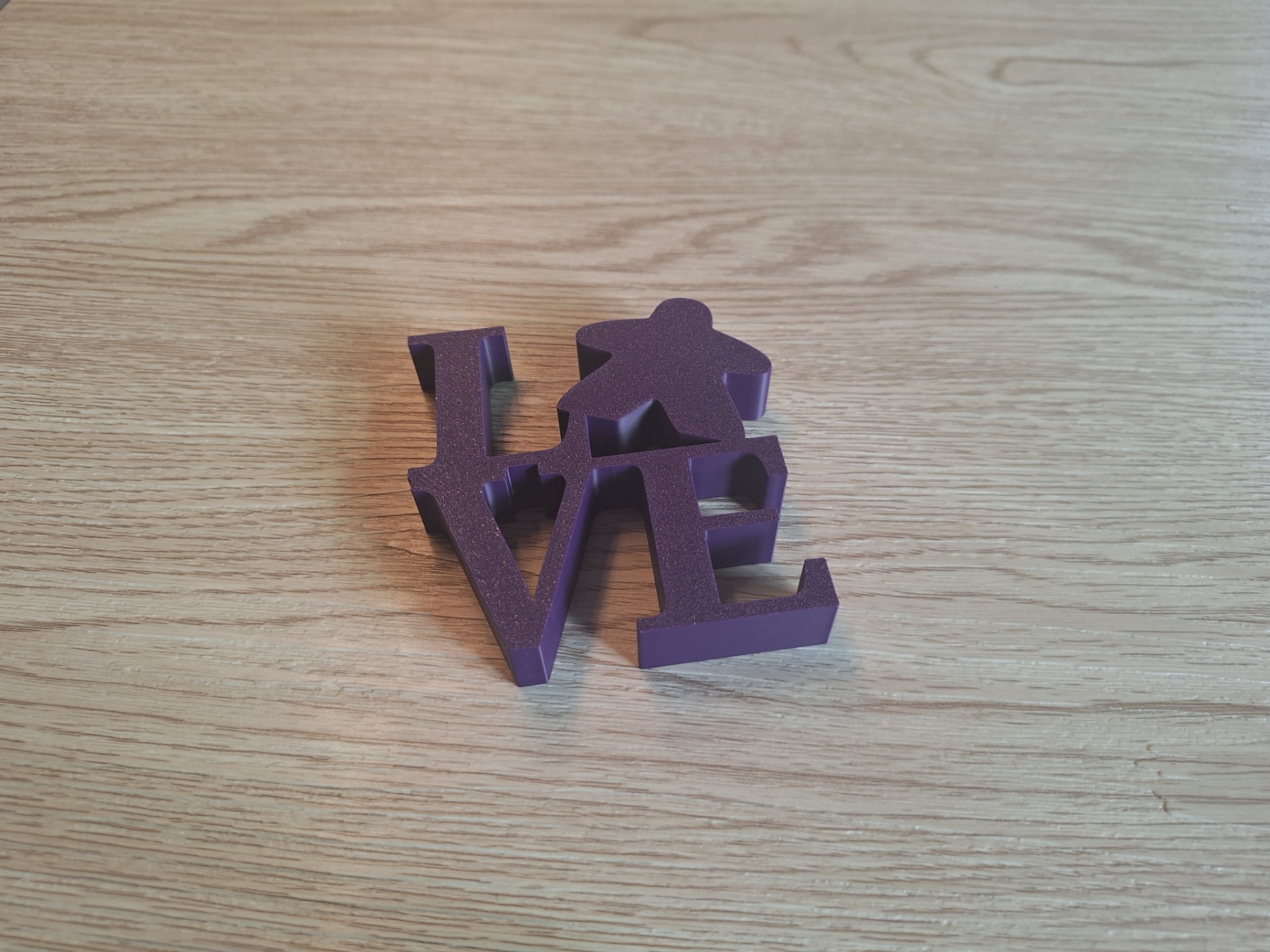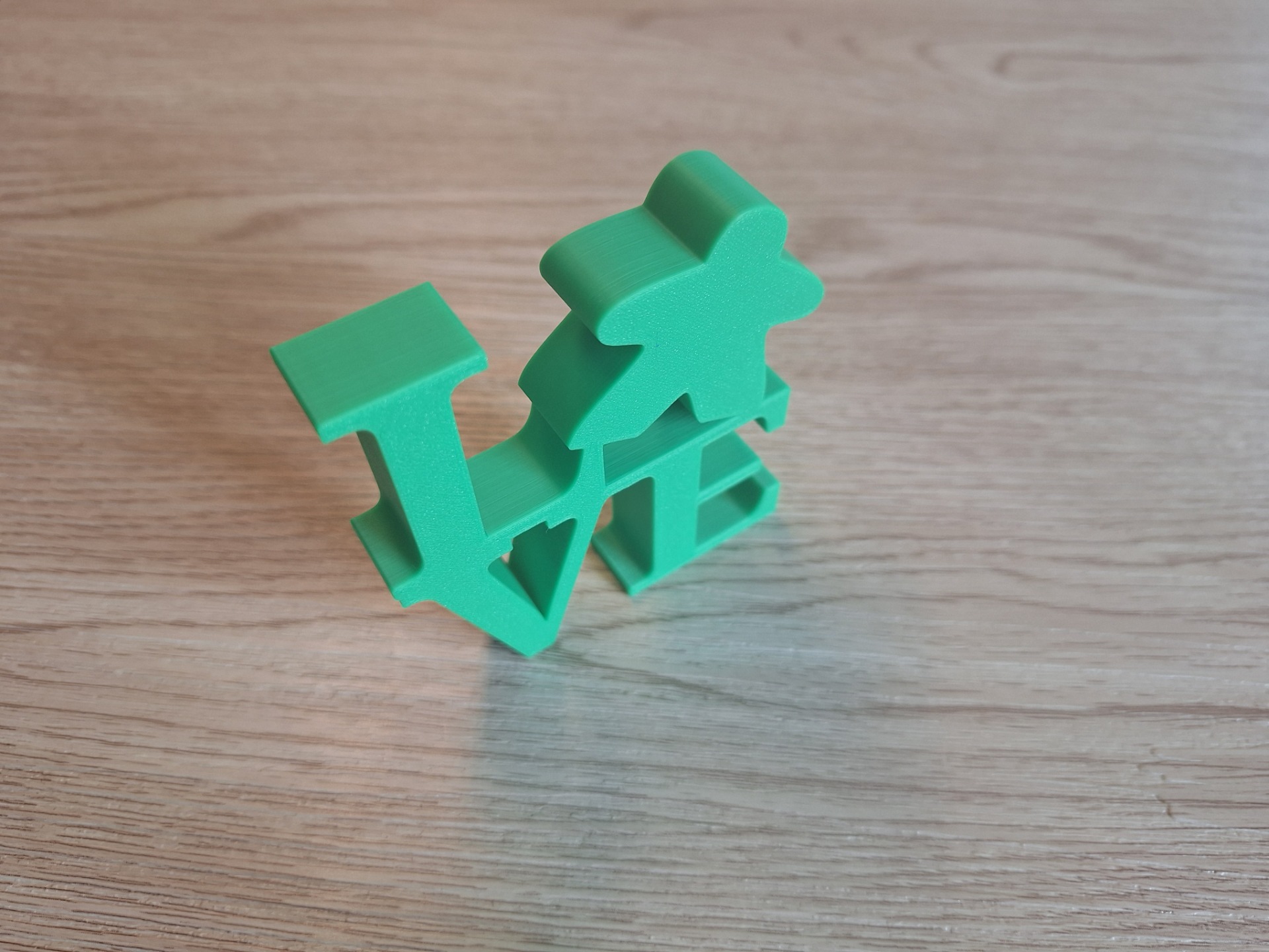 Maak je liefde voor bordspellen zichtbaar met onze kleine Love waarin de O vervangen is door een meeple.