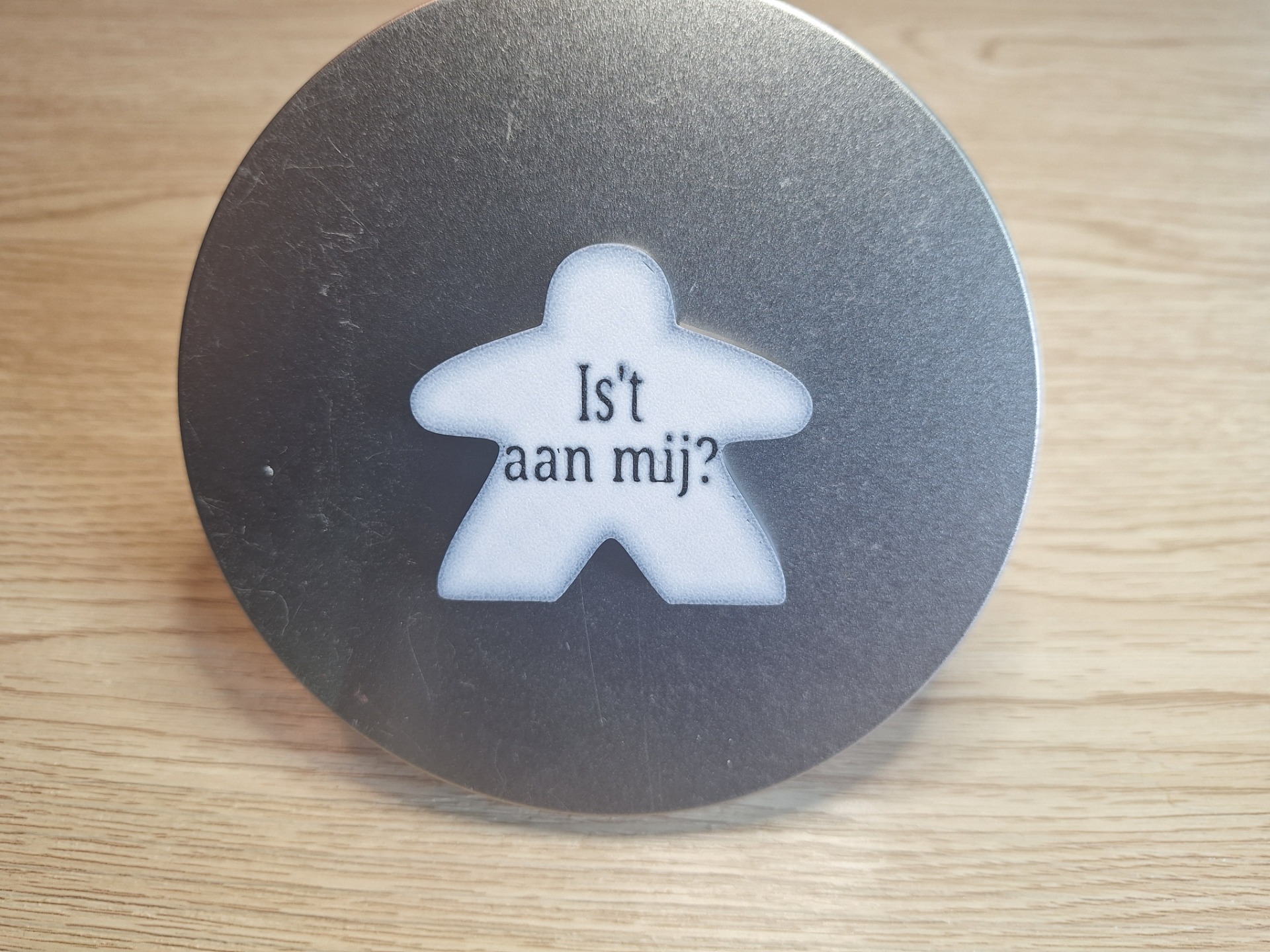Deze decoratieve magneet meet 5cm hoog, 5,4cm breed en 7mm dik. De voorzijde is wit, de tekst en de zijkanten zijn zwart.