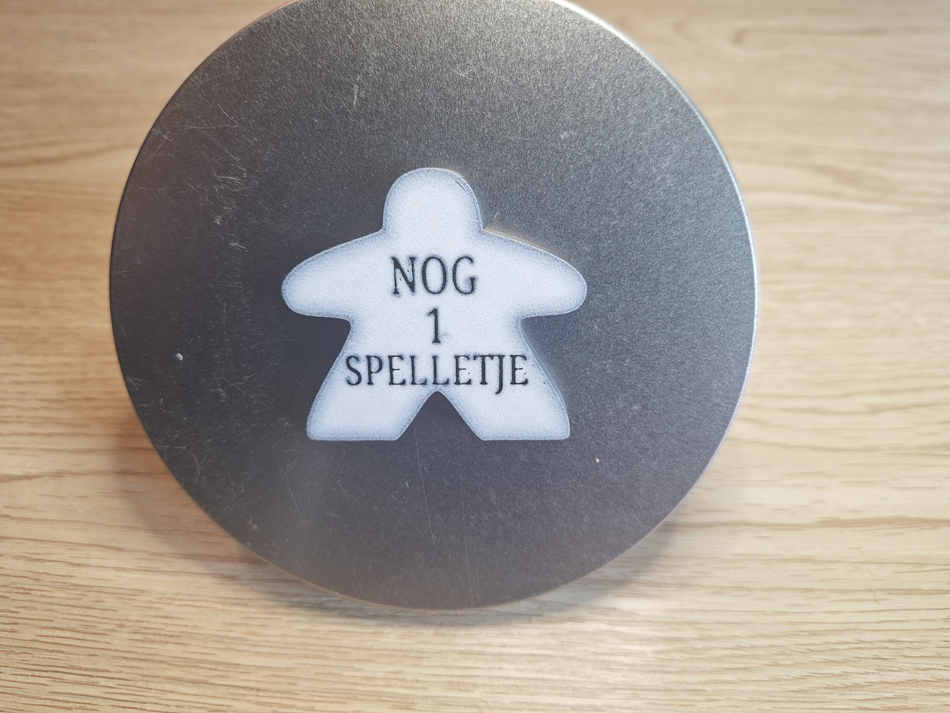 Deze decoratieve magneet meet 5cm hoog, 5,4cm breed en 7mm dik. De voorzijde is wit, de tekst en de zijkanten zijn zwart.
