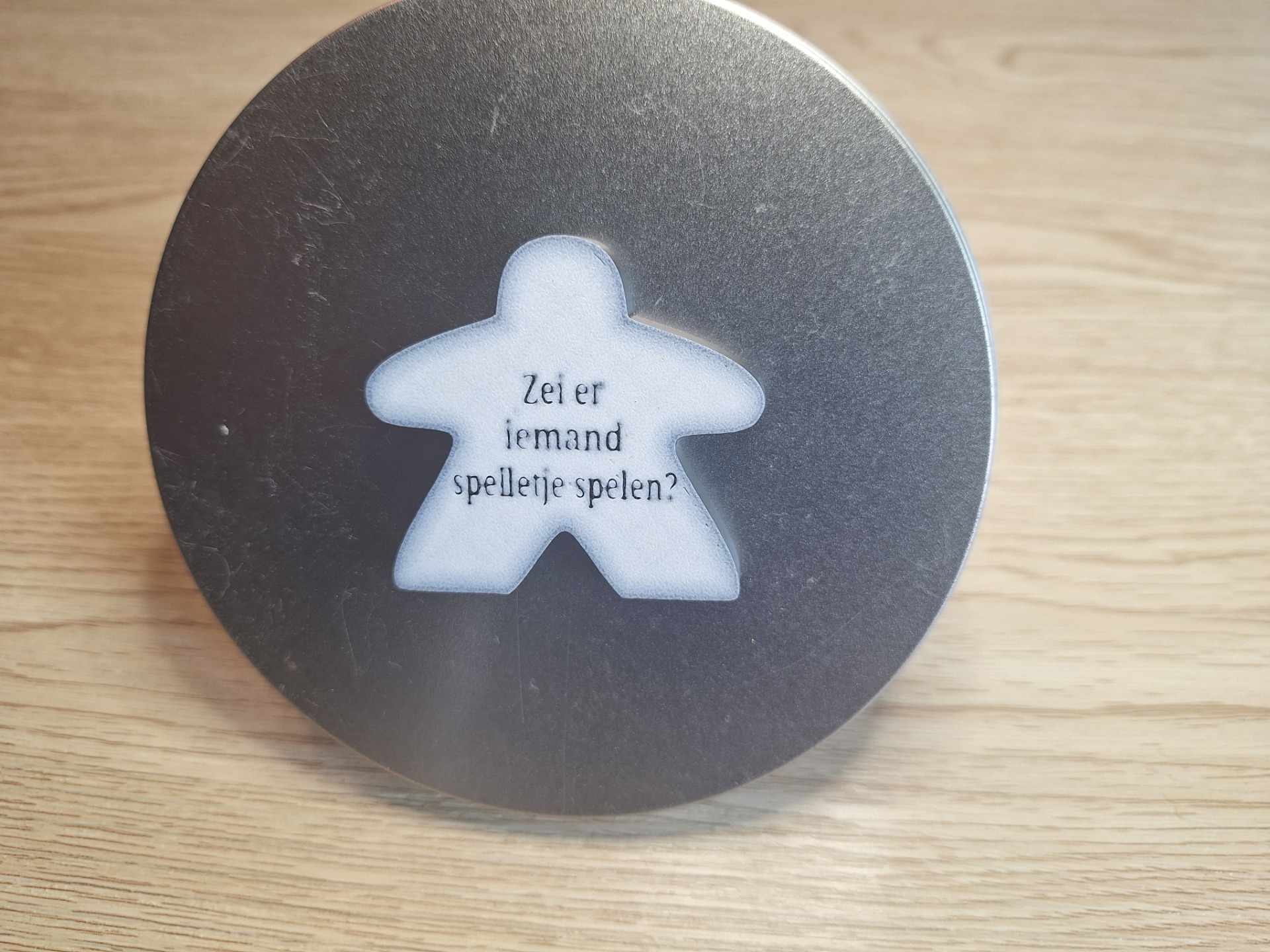 Deze decoratieve magneet meet 5cm hoog, 5,4cm breed en 7mm dik. De voorzijde is wit, de tekst en de zijkanten zijn zwart.
