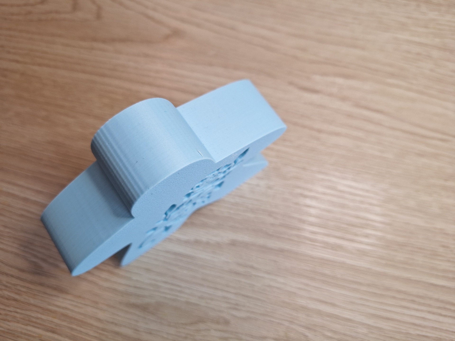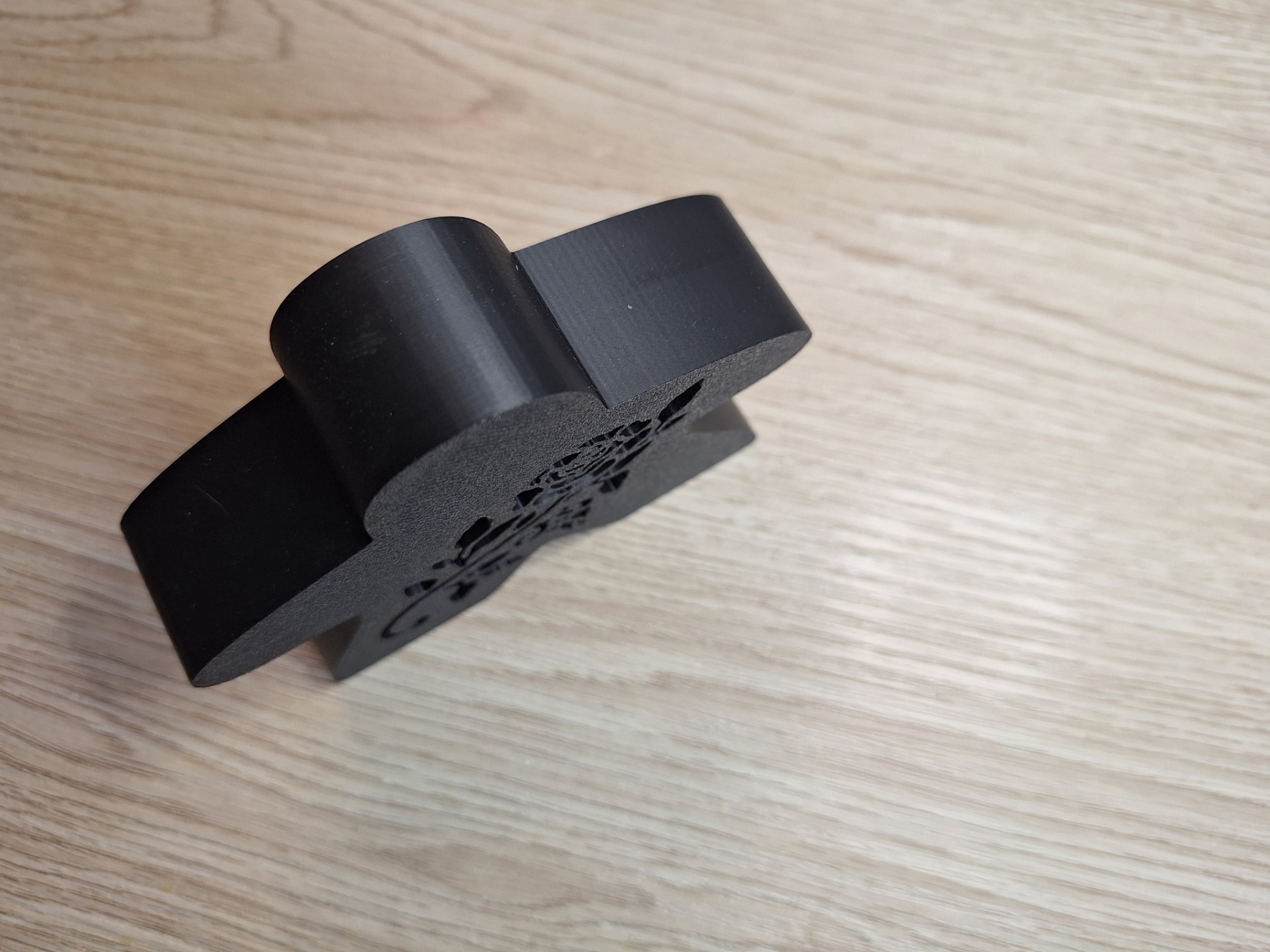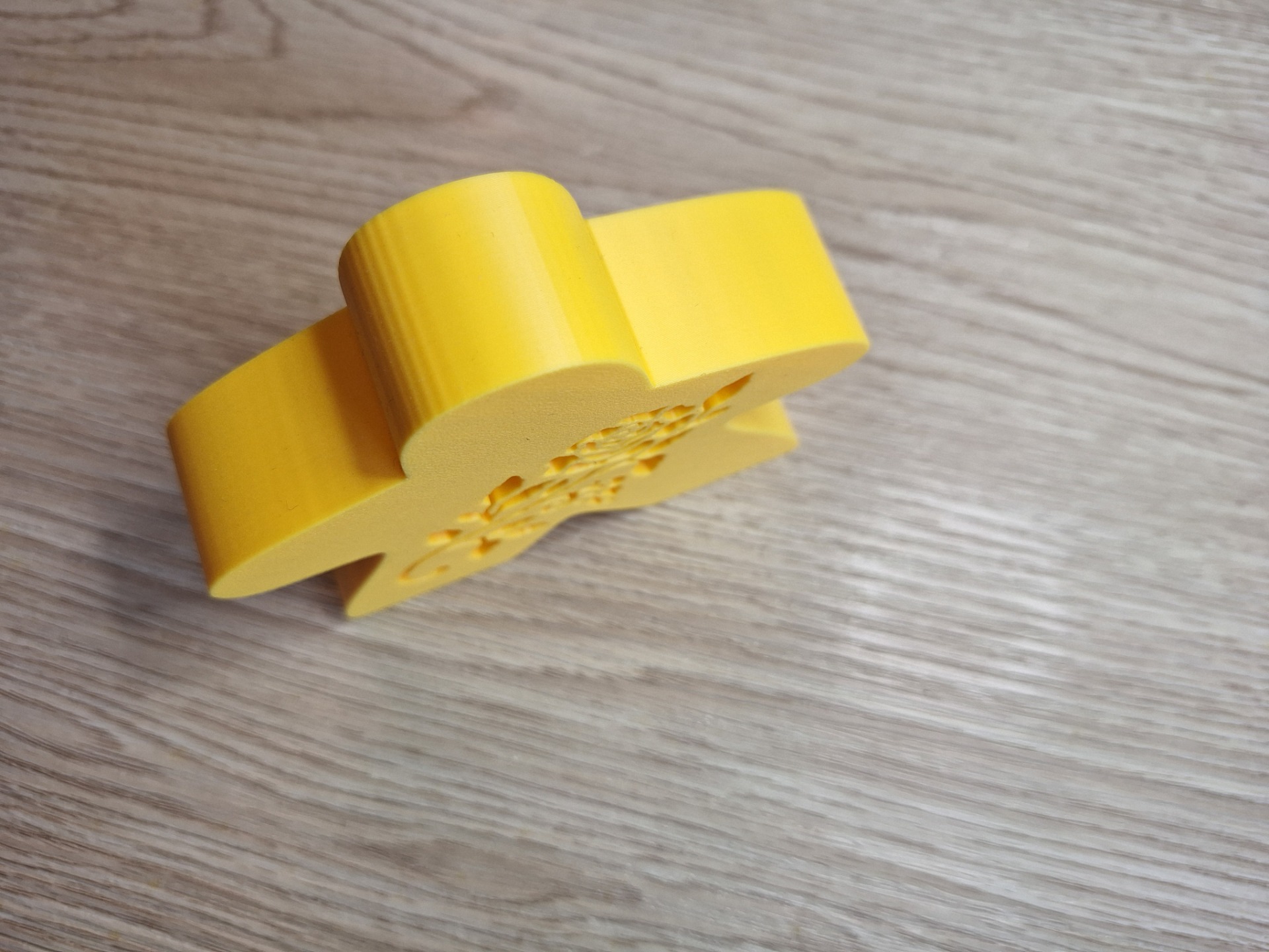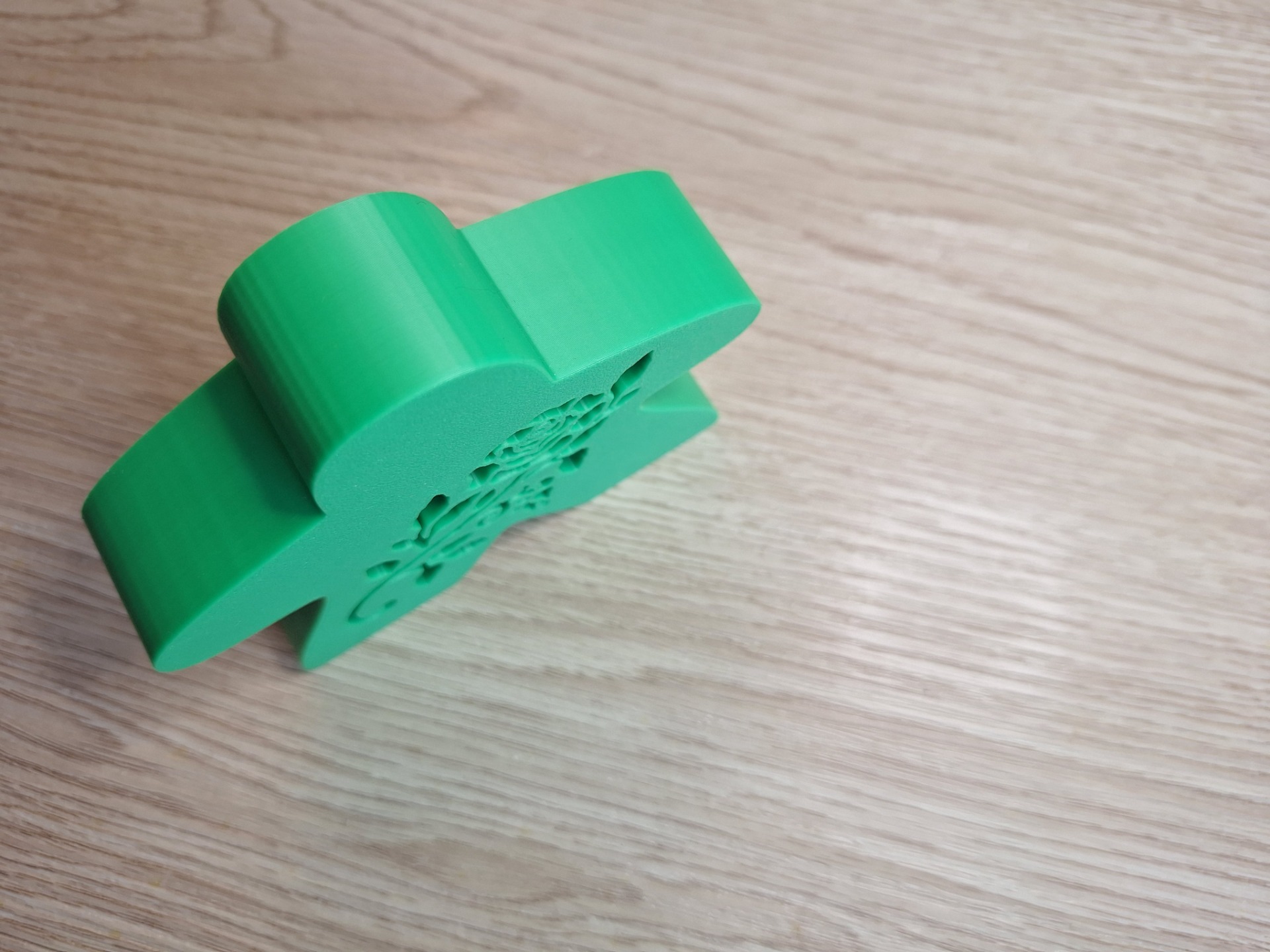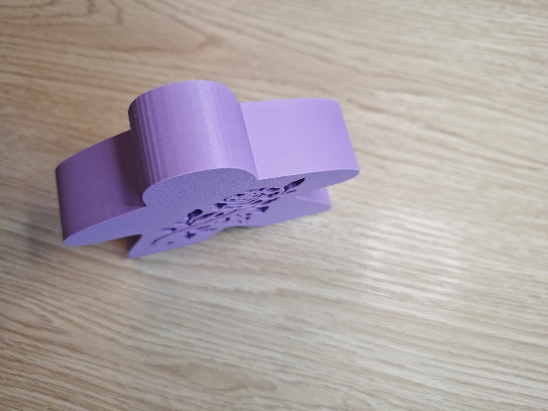 Deze meeple meet: 8,5cm hoog, 10cm breed en 2,5cm diep en bevat een roos uitsnijding