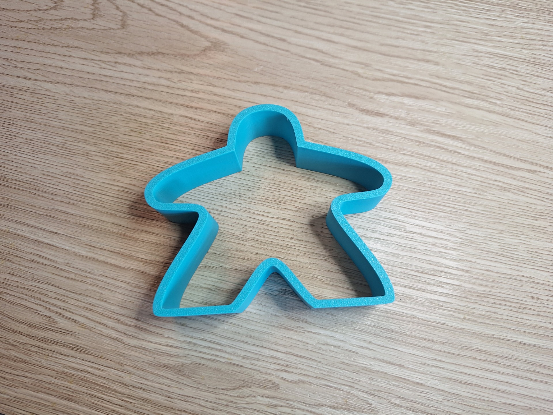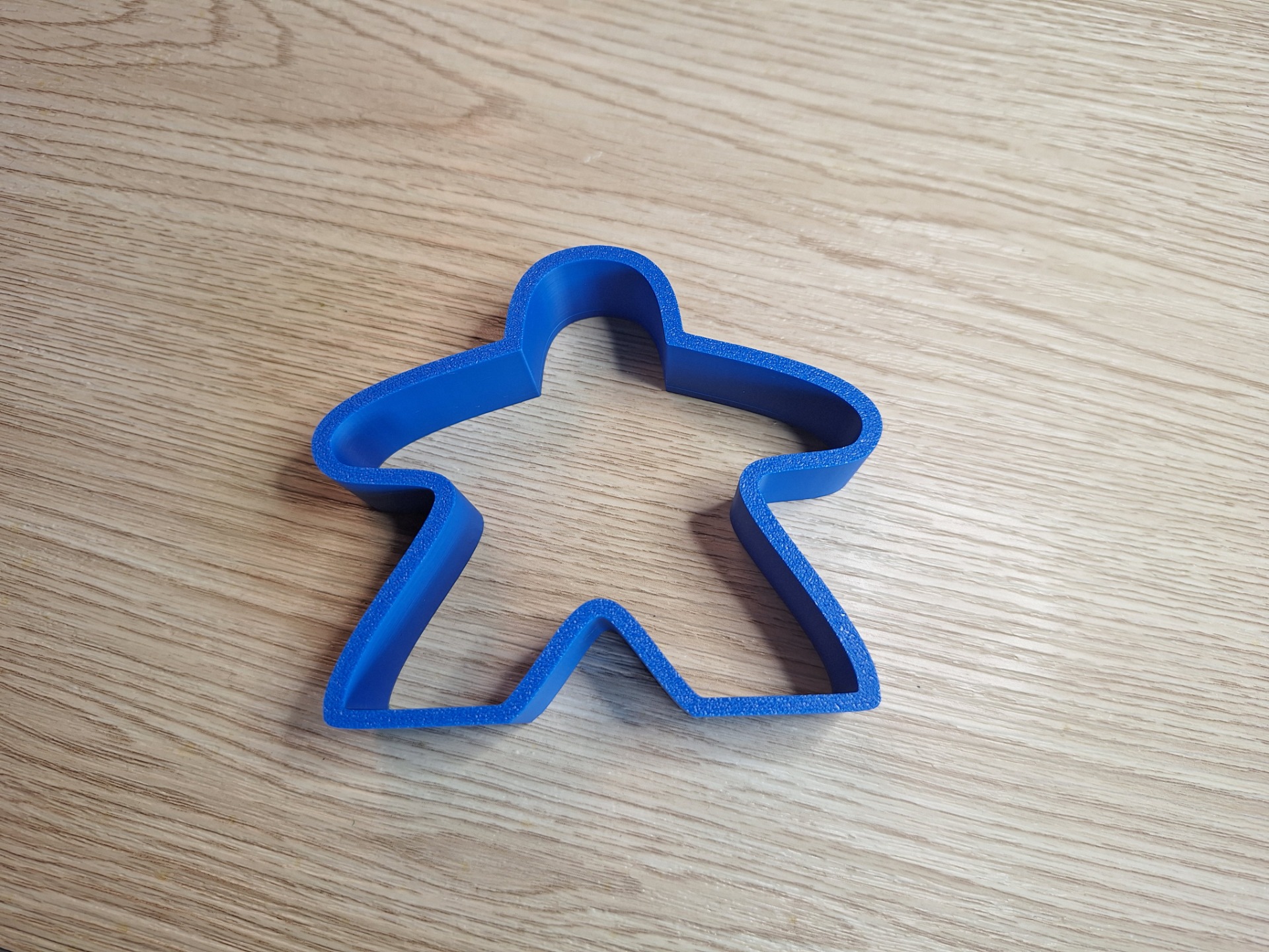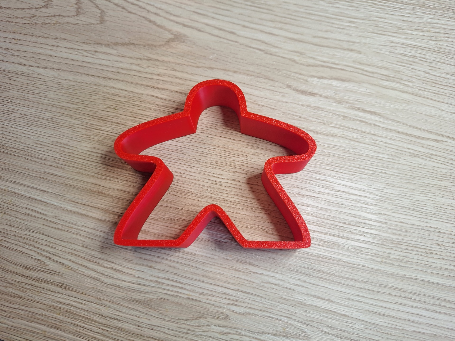 Deze meeple meet: 8,5cm hoog, 10cm breed en 2,5cm diep
